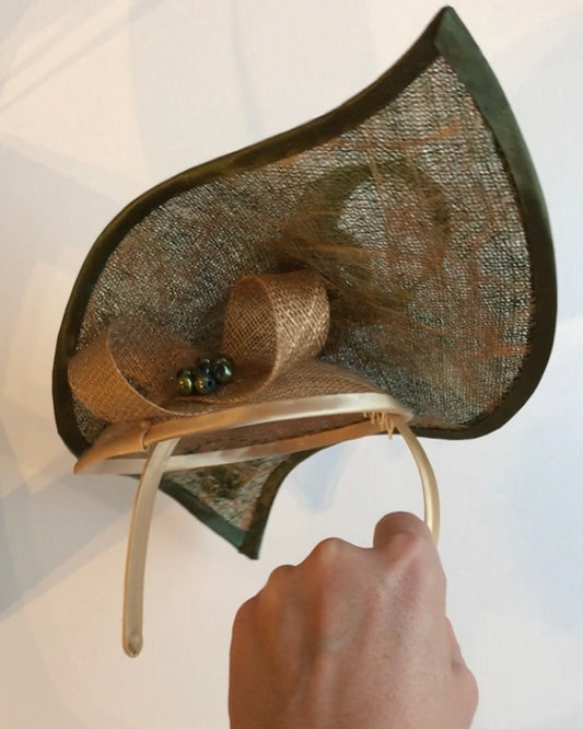 Bottle Green Headpiece with Gold Trim for Hire (GN12)