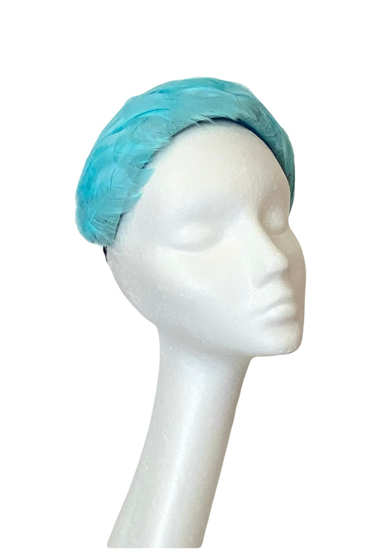 Mabel - Feathered Bandeau Headpiece in Turquoise.