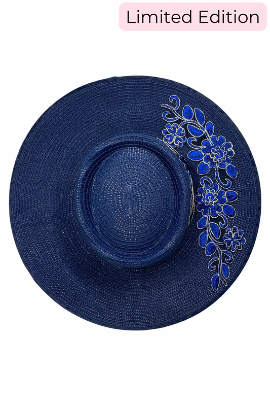 Sophia - Navy Blue & Gold Large Brimmed Hat