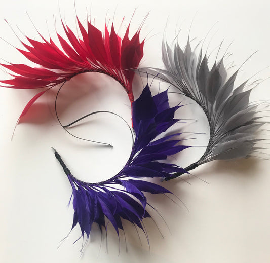 Wool Tweed Headpiece with Plum Feather for Hire (PK8)