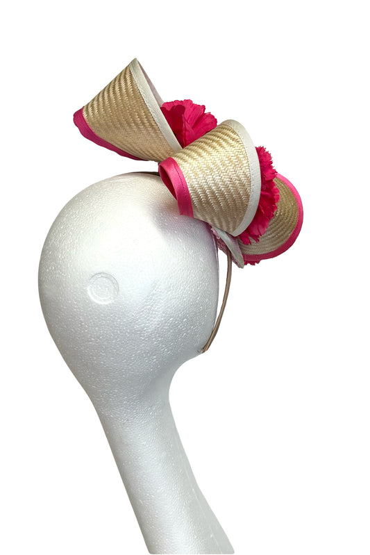 Dusty Pink Crinoline Headpiece for Hire (PK52)