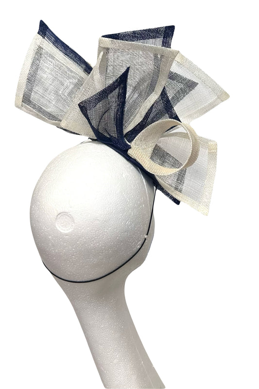 Navy and Ivory Bow Headpiece for Hire (BN49)