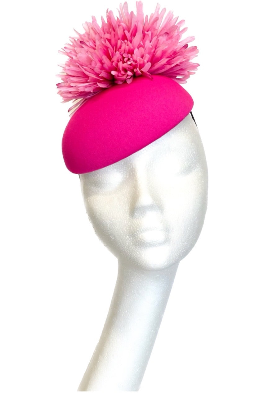 Hot pink headpiece with flowers, available to hire. Attached to the head with elastic and comb or hairband if preferred.