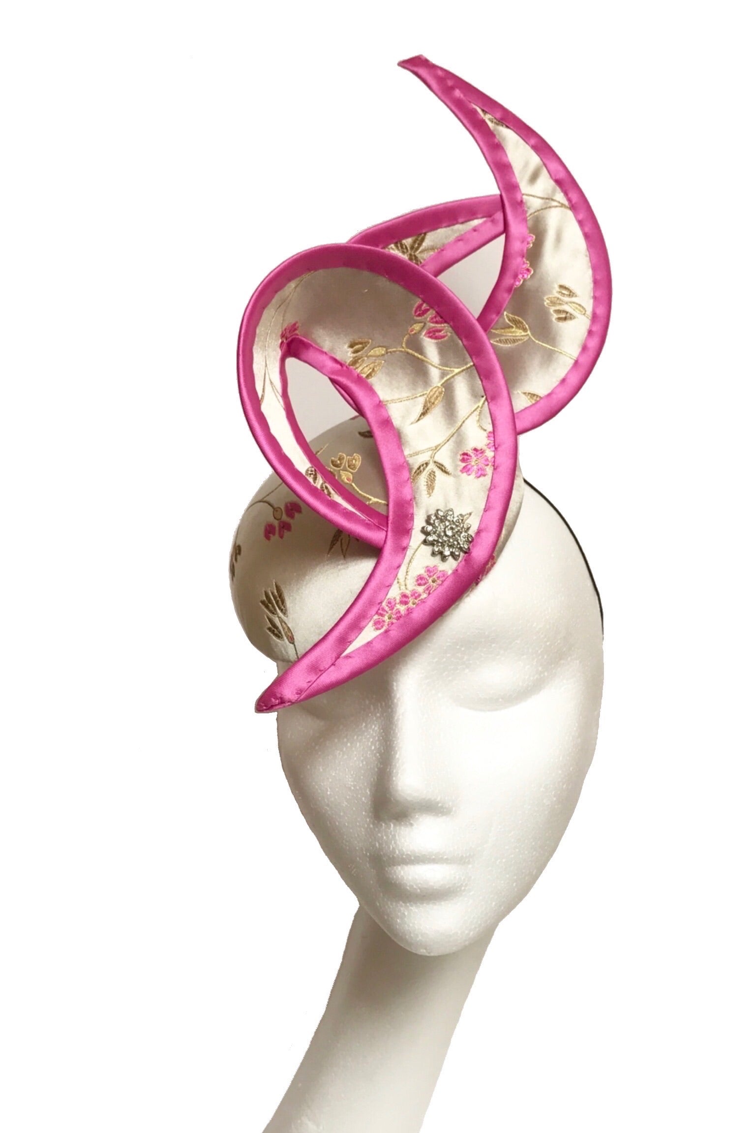 This headpiece is one of the unique headpieces in our Sustainable Vintage Collection. Each piece in this capsule collection has been painstakingly designed and created using a vintage hat or fabric as the base material. In some cases, a vintage hat has been completely disassembled and remade to form a new modern shape and in other cases, the basic hat has been reworked and re-trimmed. The finished headpieces are fabulously unique, one-off couture pieces, sustainably enabling the vintage styles of the past to be loved into the future. We hope you adore them as much as we do!